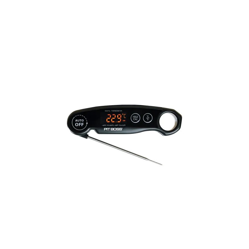 The Pit Boss Digital Meat Thermometer is ideal for outdoor cooking, grilling, smoking, and barbecue. Simply insert the long temperature probe into your food for instant results. The easy-to-read LED screen reads precise temperatures and can measure in Fahrenheit or Celsius. The stainless-steel probe is perfect for heavy-duty use and features a convenient collapsible design. Measure your desired temperatures instantly and precisely with this digital meat thermometer.
